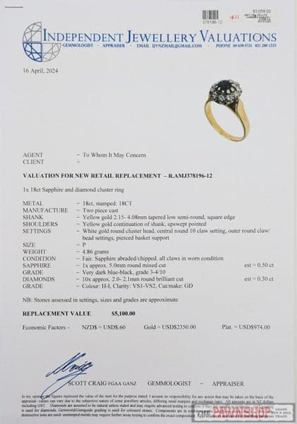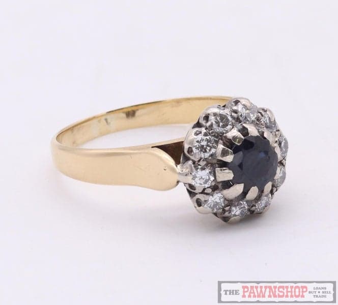 On offer here we have this gorgeous 18ct yellow gold sapphire and diamond cluster ring, with a replacement value of $5,100!