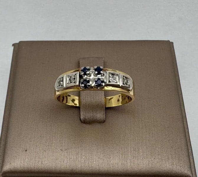 On offer here is a 18ct Yellow Gold 4x Genuine Blue Sapphire & Diamond Band Ring.