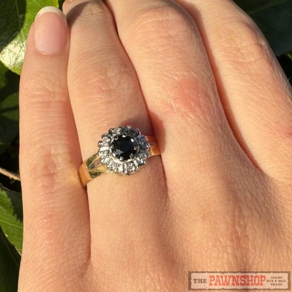 18ct Yellow Gold Sapphire & Diamond Cluster Ring ~ $5,100!