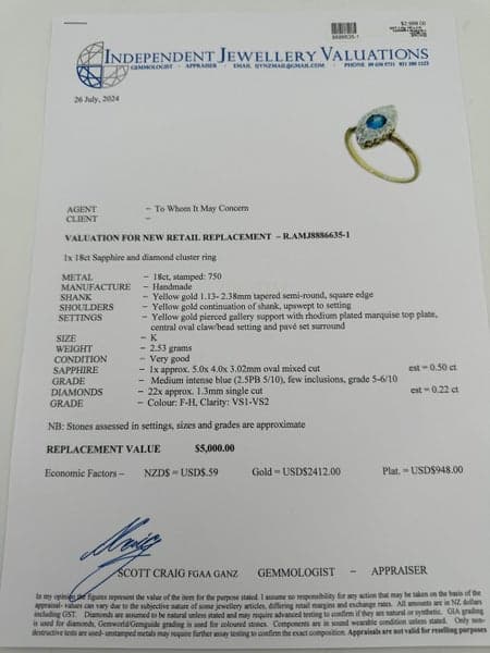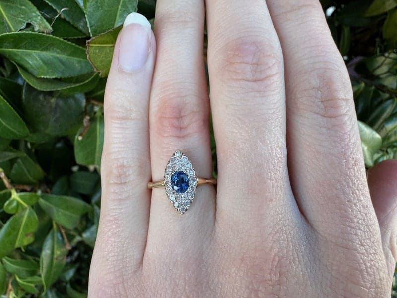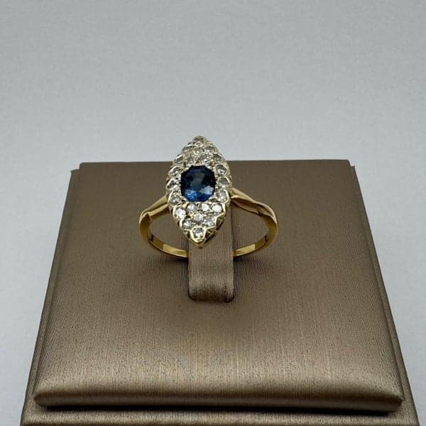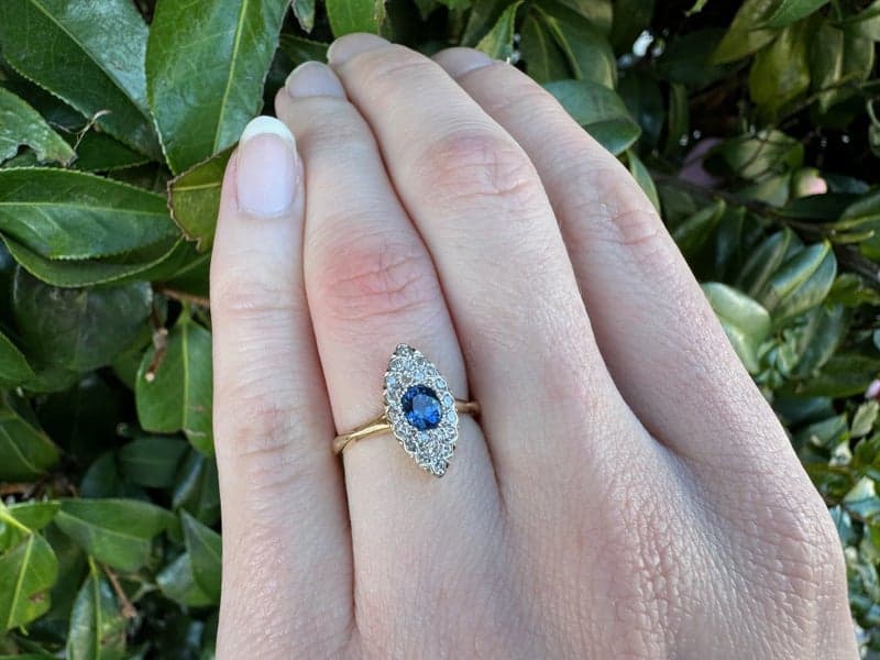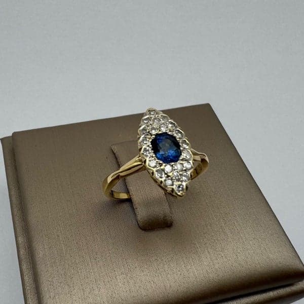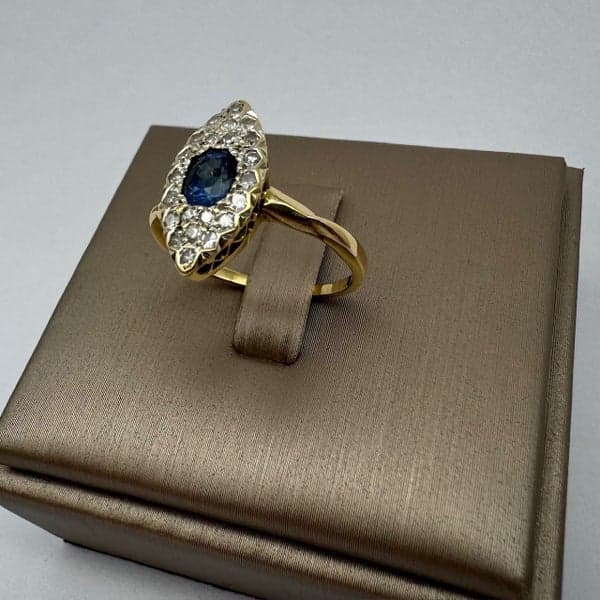 18ct Yellow Gold Sapphire & Diamond Marquise Shaped Cluster Ring ~ $5,000!