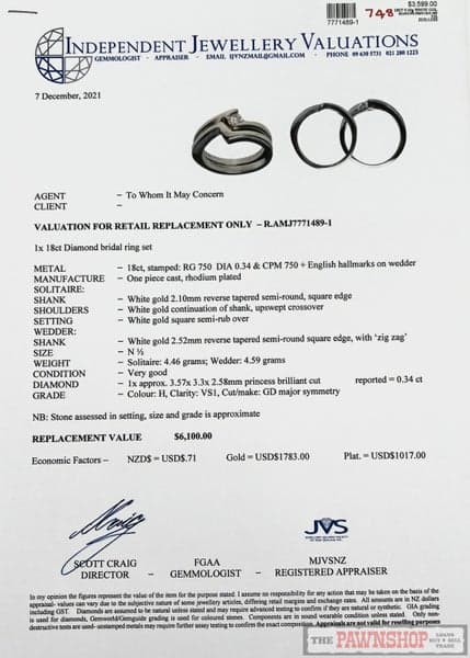 1x Princess Brilliant Cut Diamond, reported 0.34ct TDW