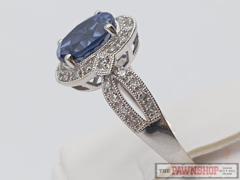2.25ct Lab-Grown Sapphire and Diamond Cluster Ring in 10ct White Gold $1,600