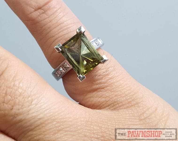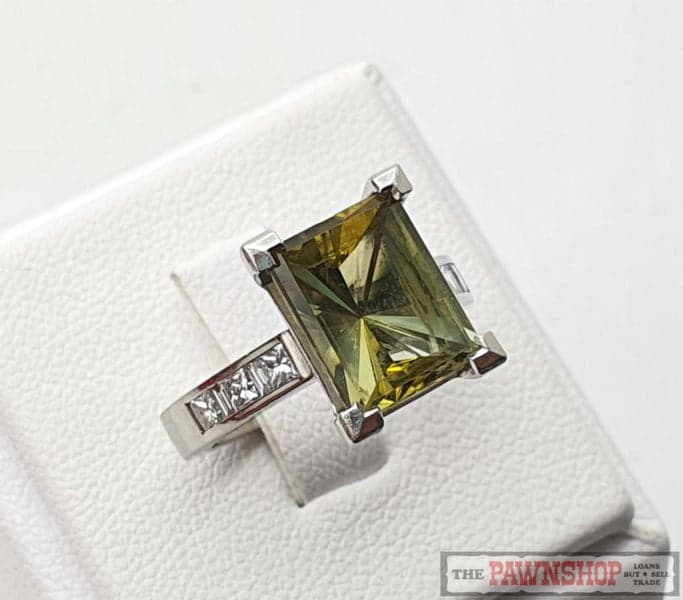 On offer here is a Platinum Tourmaline and Diamond Ring