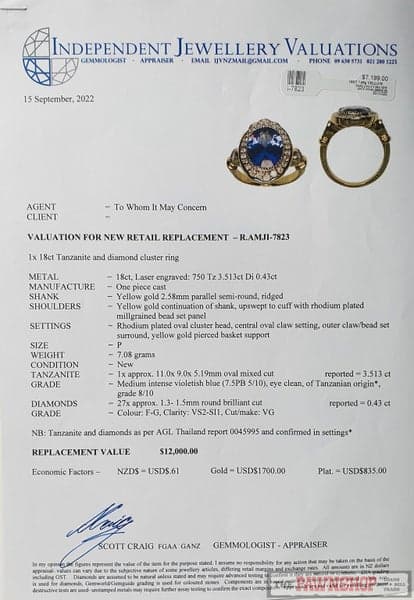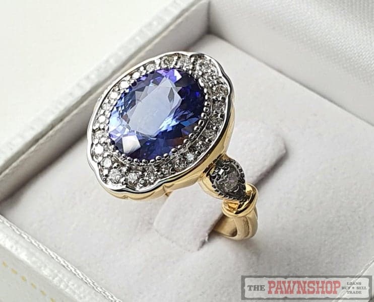 3.513ct Tanzanite and Diamond Cluster Ring in 18ct Yellow Gold $12,000