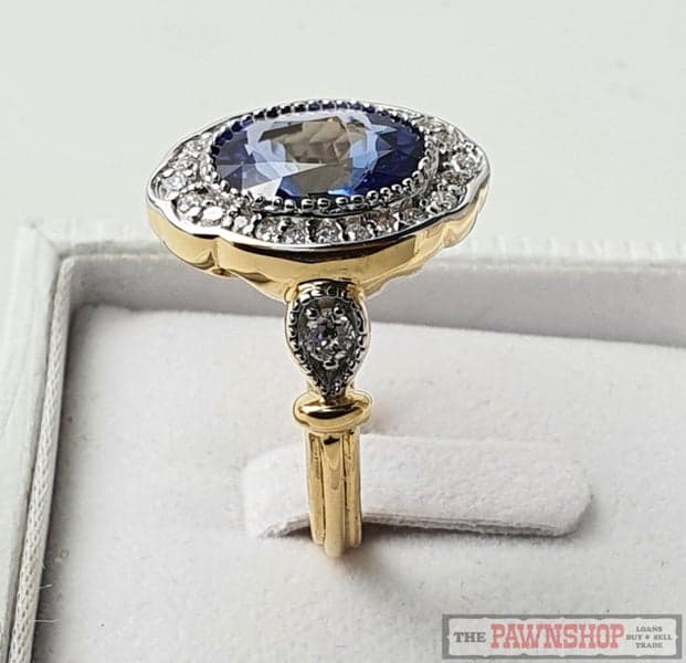 On offer here is a 18ct Yellow Gold Tanzanite and Diamond Cluster Ring