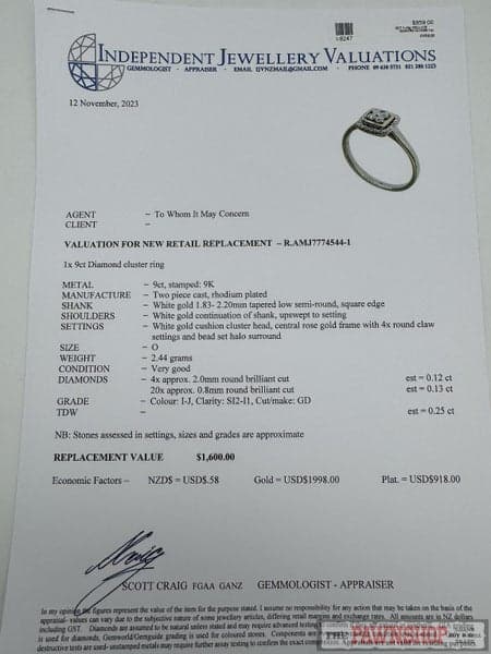 9ct White Gold 0.25ct TDW Diamond Cluster Ring ~ $1,600!