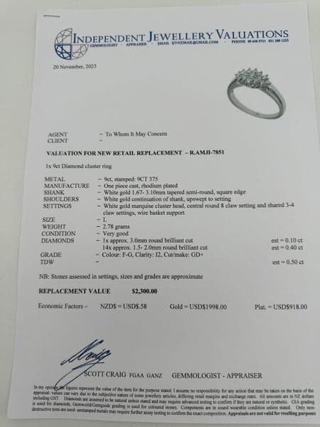 9ct White Gold 0.50ct TDW Marquise Shaped Diamond Cluster ~ $2,300!