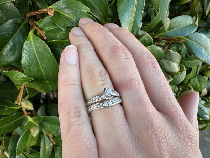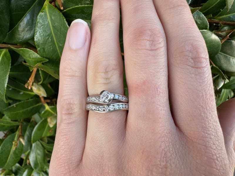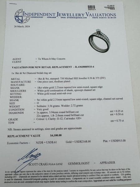 On offer here is a 18ct White Gold 0.50ct TDW Diamond Solitaire Ring & 9ct White Gold 0.25ct TDW Curved Diamond Band.