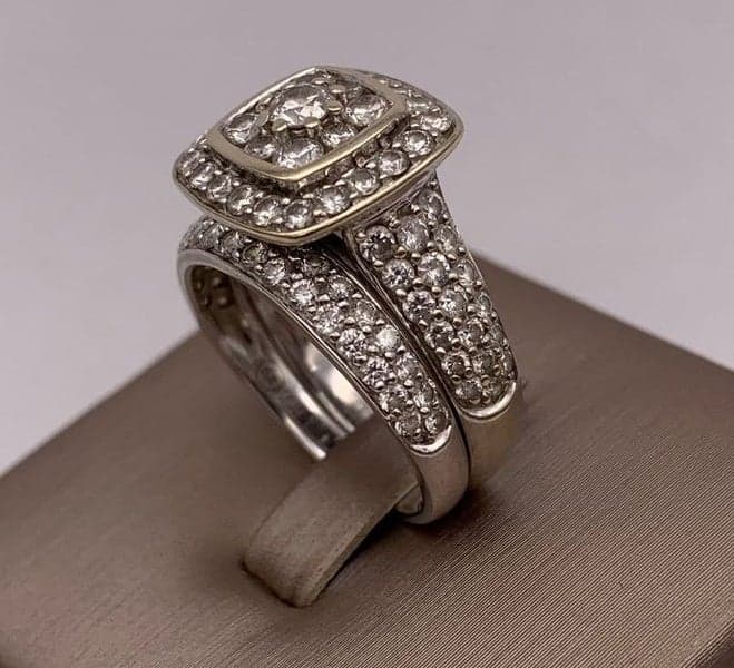 9ct White Gold 2.0ct TDW Diamond Cluster Ring Set ~ $7,500!