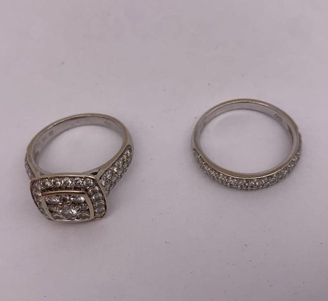 On offer here is a 9ct White Gold 2.0ct TDW Diamond Cluster Ring Set.