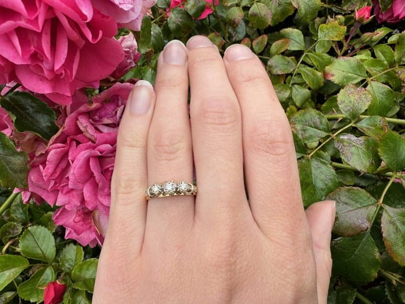 On offer here is an 9ct Yellow Gold Three Stone Diamond Ring