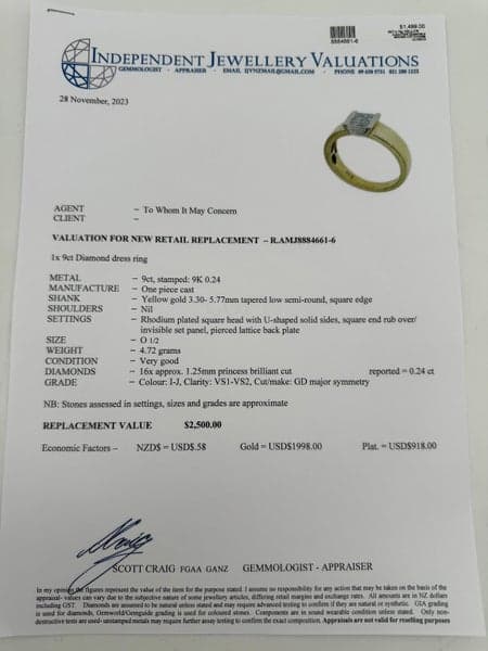 9ct Yellow Gold 0.24ct TDW Diamond Princess Cut Dress Ring ~ $2,500!