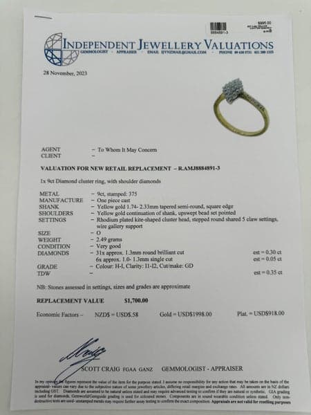 Replacement Value: $1,700 NZD