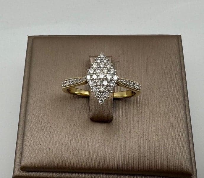 On offer here is a 9ct Yellow Gold 0.35ct TDW Diamond Marquise Shaped Cluster Ring.