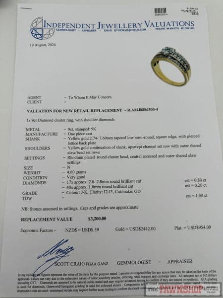 Replacement Value: $3,200 NZD