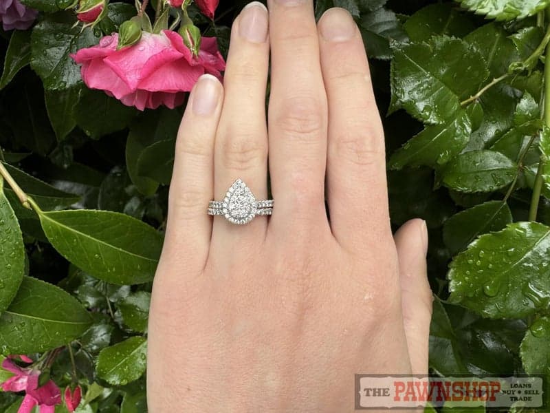 On offer here is a 9ct Yellow Gold Diamond Pear Shaped Cluster Ring Set.