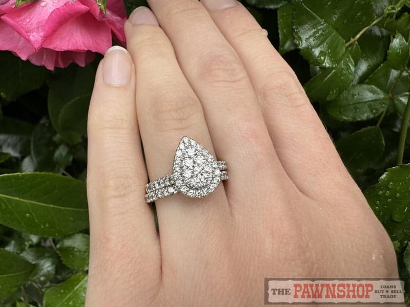 9ct Yellow Gold 1.0ct TDW Diamond Pear Shaped Cluster Ring Set ~ $3,200!