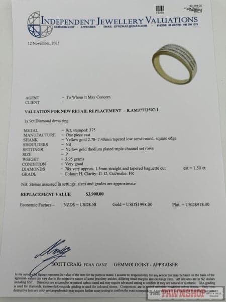 On offer here is a 9ct Yellow Gold Baguette Diamond Dress Ring.