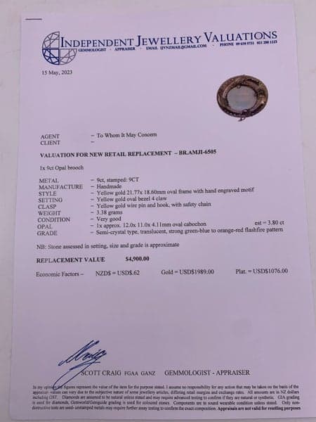 9ct Yellow Gold 3.80ct Opal Brooch ~ $4,900!