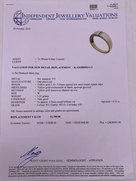 9ct Yellow Gold 3x Diamond Dress Ring ~ $1,700!