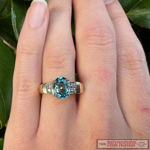 9ct Yellow Gold Blue Zircon & Diamond Ring ~ $2,200!