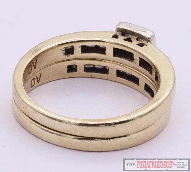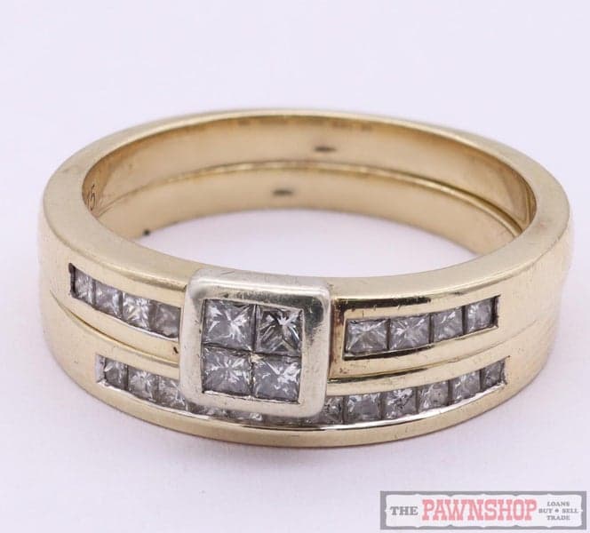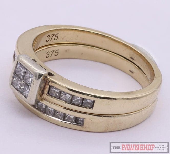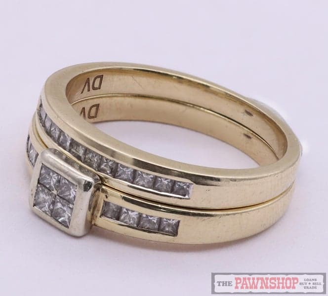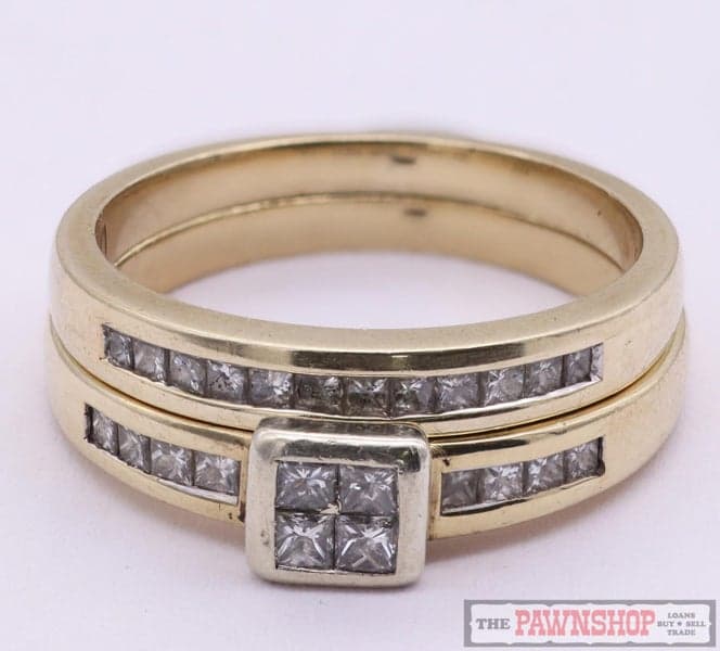 On offer here we have this stunning 9ct yellow gold diamond bridal ring set of two, with a replacement value of $1,200!