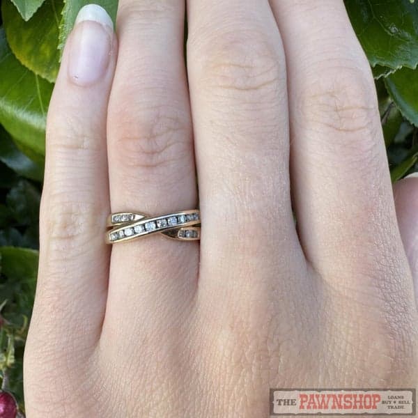 9ct Yellow Gold Diamond Crossover Dress Ring ~ $1,200!