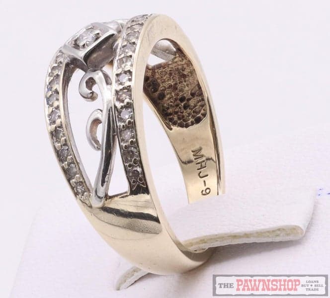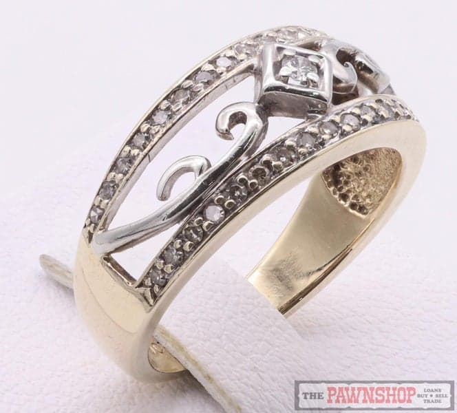 On offer here we have this 9ct Yellow Gold Diamond Scrollwork Swirl Band, 3.60 grams.