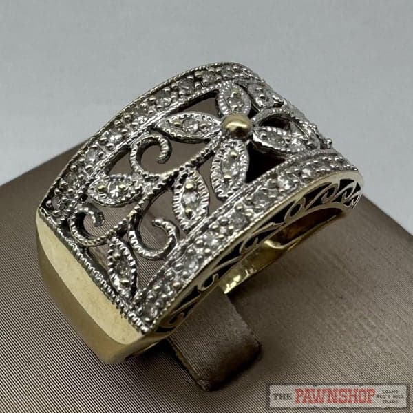 On offer here is a 9ct Yellow Gold Diamond Filigree Flower Dress Ring.