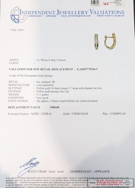 9ct Yellow Gold Glass / Paste Hoop Earrings 3.11 grams ~ $900