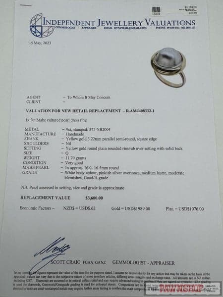 9ct Yellow Gold Mabe Pearl Ring ~ $3,600!
