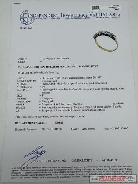 Replacement Value: $900 NZD
