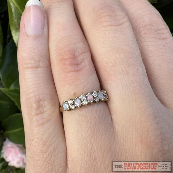On offer here is a 9ct Yellow Gold Opal & Cubic Zirconia Dress Ring