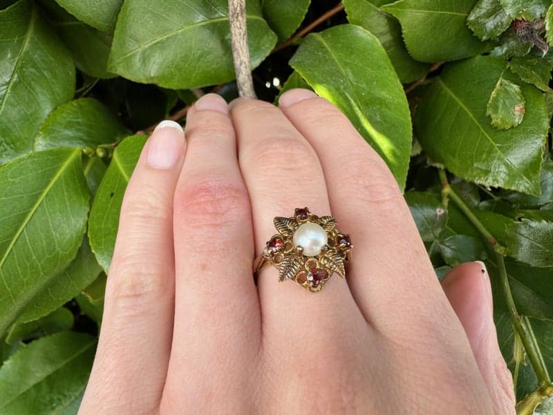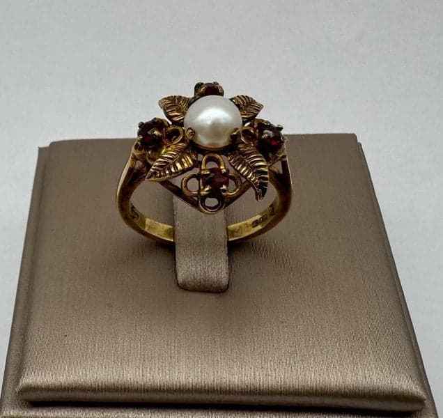 9ct Yellow Gold Pearl & Garnet Dress Ring ~ $1,400!