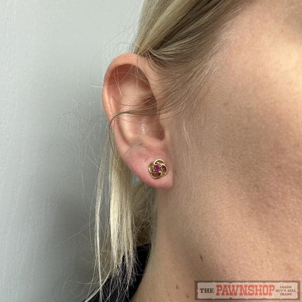 On offer here is a pair of 9ct Yellow Gold Ruby Stud Earrings.
