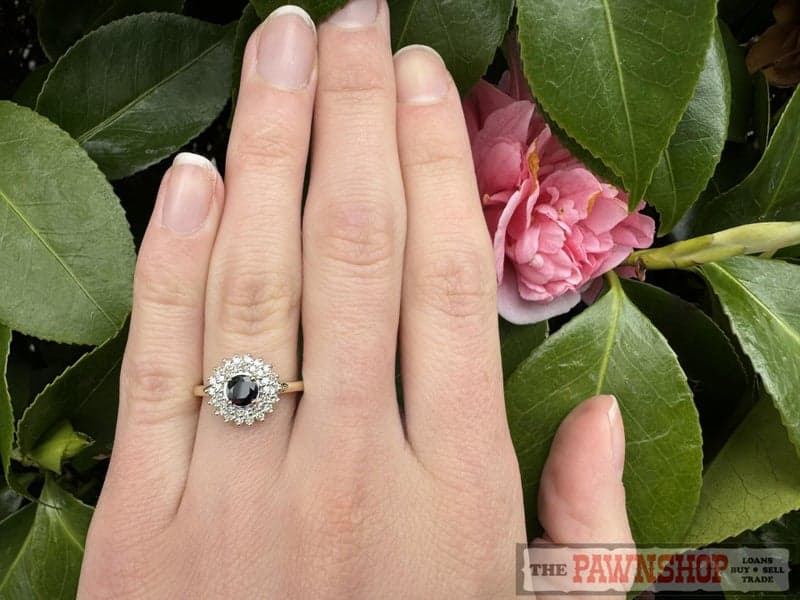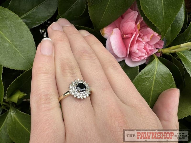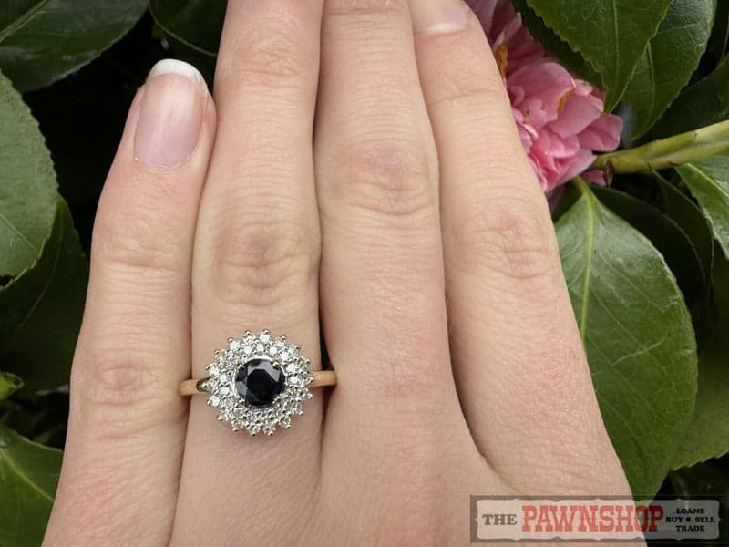 9ct Yellow Gold Sapphire & Diamond Cluster Ring ~ $1,600!