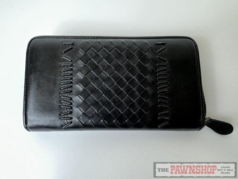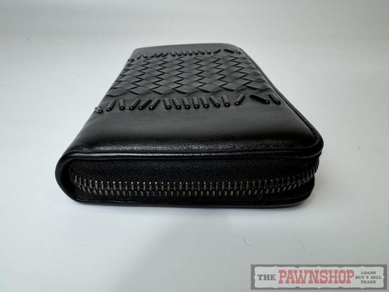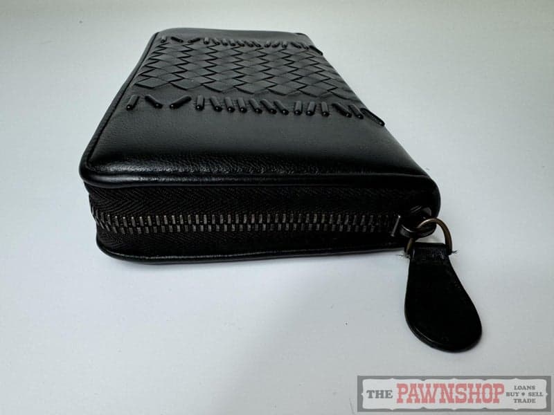 On offer here is an Authentic Bottega Veneta Intrecciato Bar Stud Zip Wallet.
