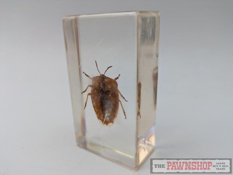 On offer here we have this unidentified brown bug encased in clear acrylic.