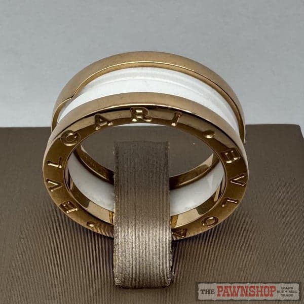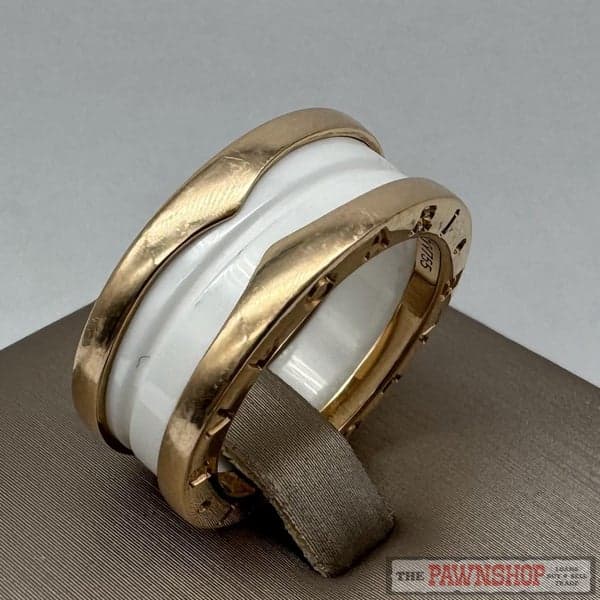 On offer here is a Bulgari B.Zero1 18ct Rose Gold & White Ceramic Dress Ring