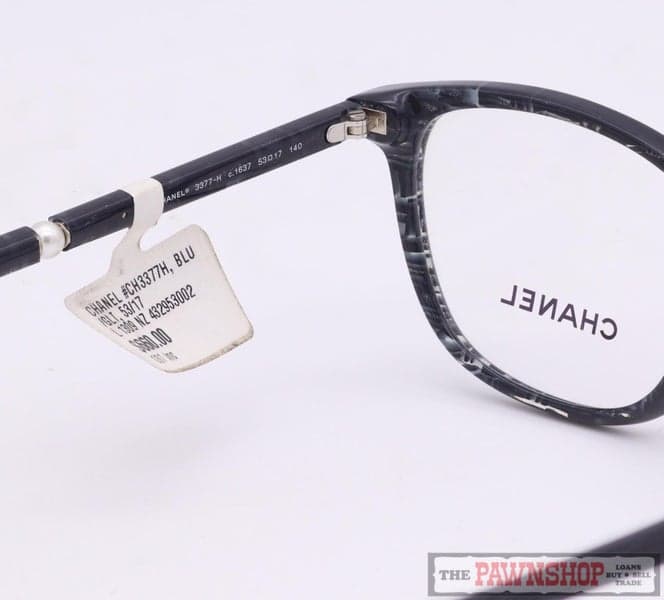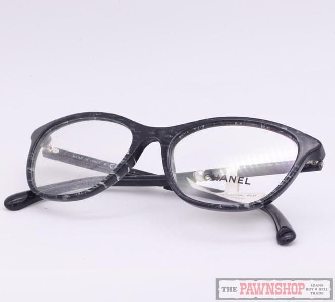 On offer here we have these Chanel 3377-H c.1637 glasses frames in marbled grey and black with glitter, with pearl details along the arms. Made in Italy. Still has original price tag of $660. Grab a bargain!