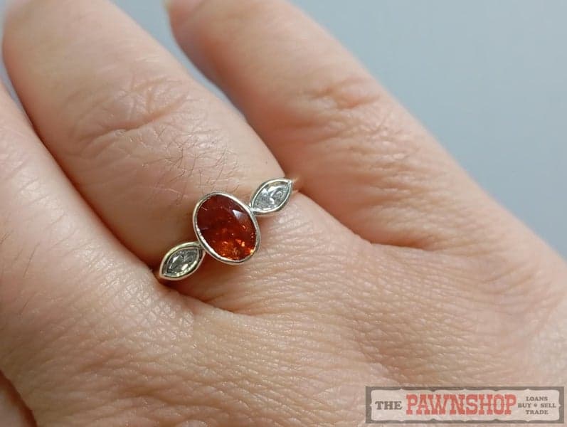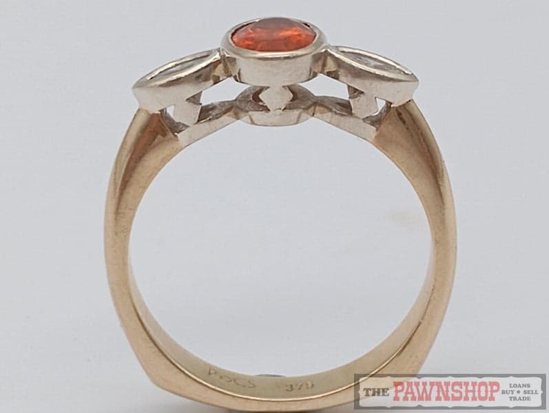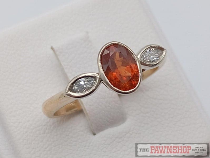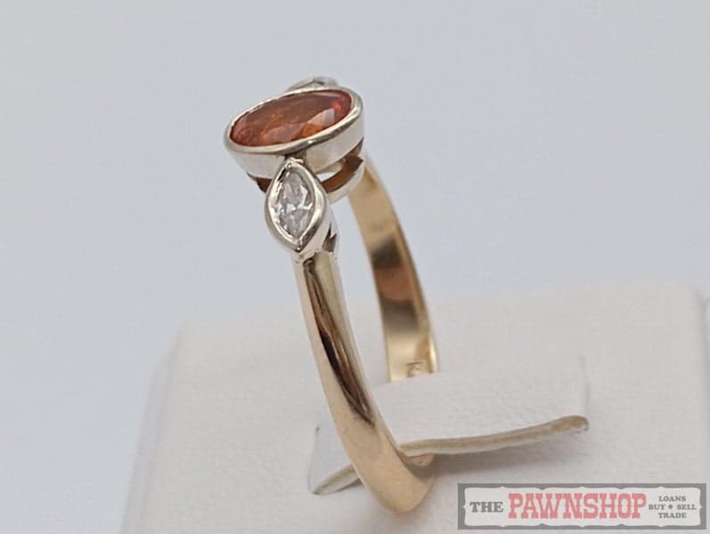 On offer here is a 9ct Yellow Gold Citrine and Diamond Three Stone Ring
