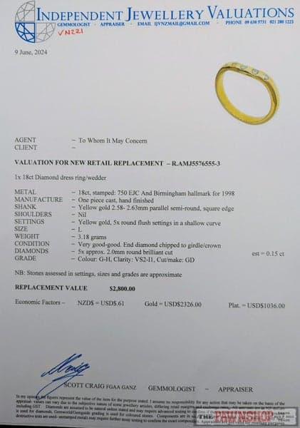 Yes, all our rings come with the pictured valuations.