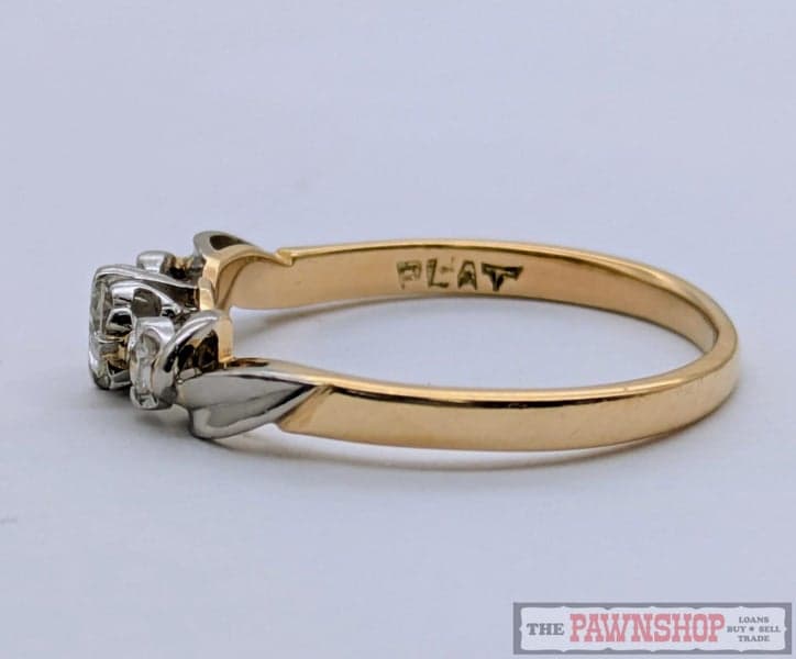 On offer here is a Handmade 18ct Yellow Gold and Platinum Three Stone Diamond Ring