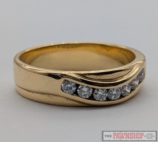 On offer here is a 18ct Yellow Gold Diamond Curved Channel Set Ring