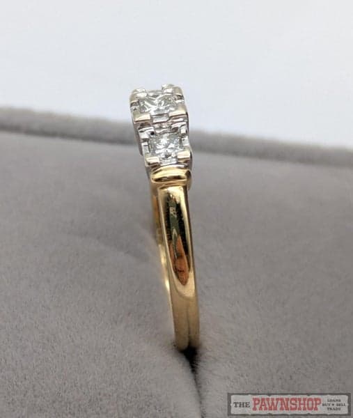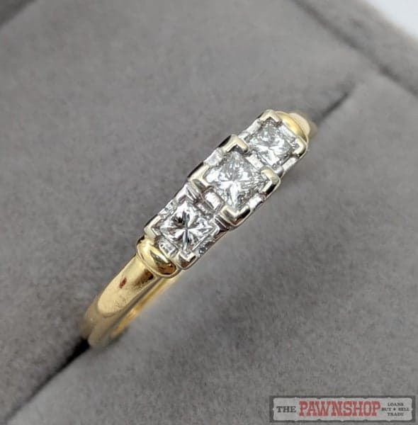On offer here is a 18ct Yellow Gold Three Stone Diamond Ring