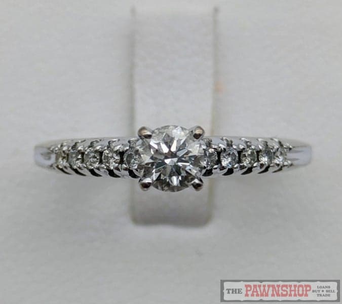 On offer here is a 18ct White Gold Diamond Solitaire Ring with shoulder diamonds.