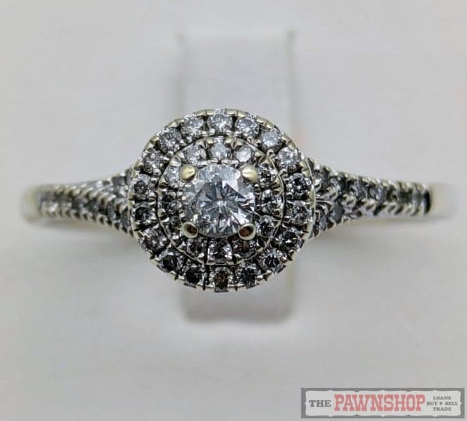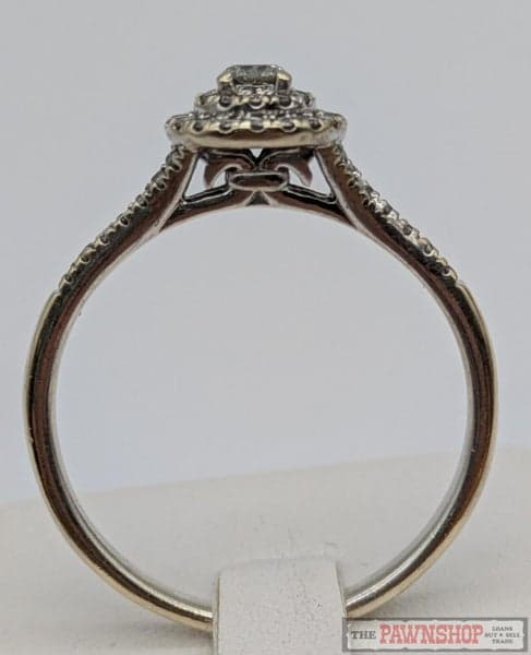On offer here is a 10ct Whiter Gold Diamond Cluster Ring with shoulder diamonds