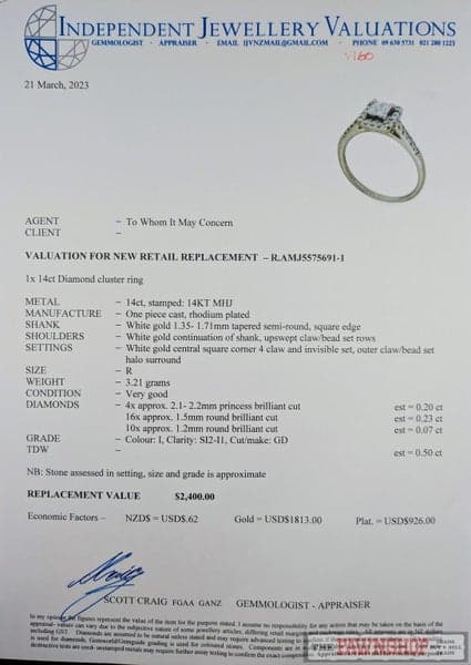 Yes, all our rings come with the pictured valuations.