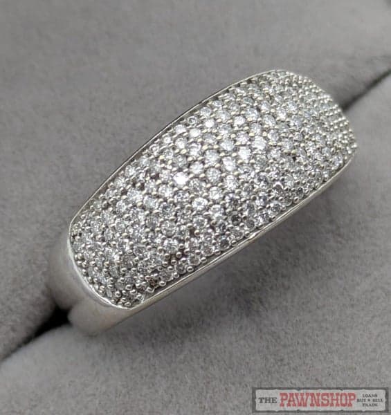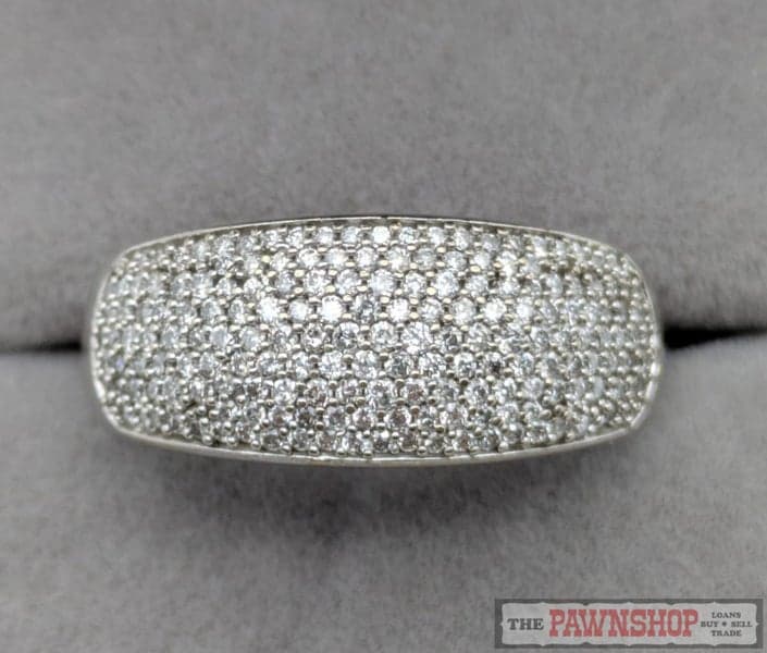 On offer here is a Diamond Pave Dome Ring in 10ct White Gold