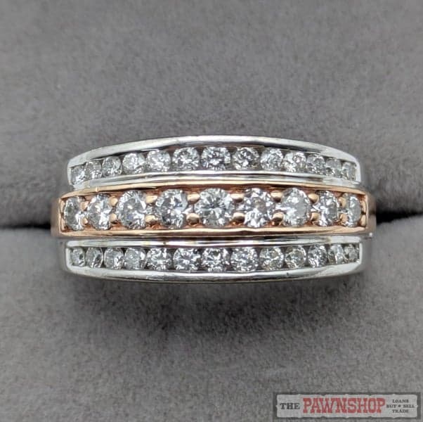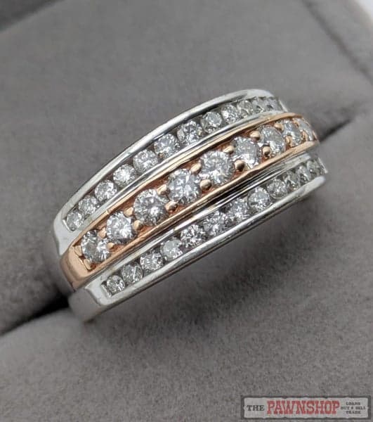 On offer here is a 10ct White Gold with Rose Gold Diamond Dress Ring